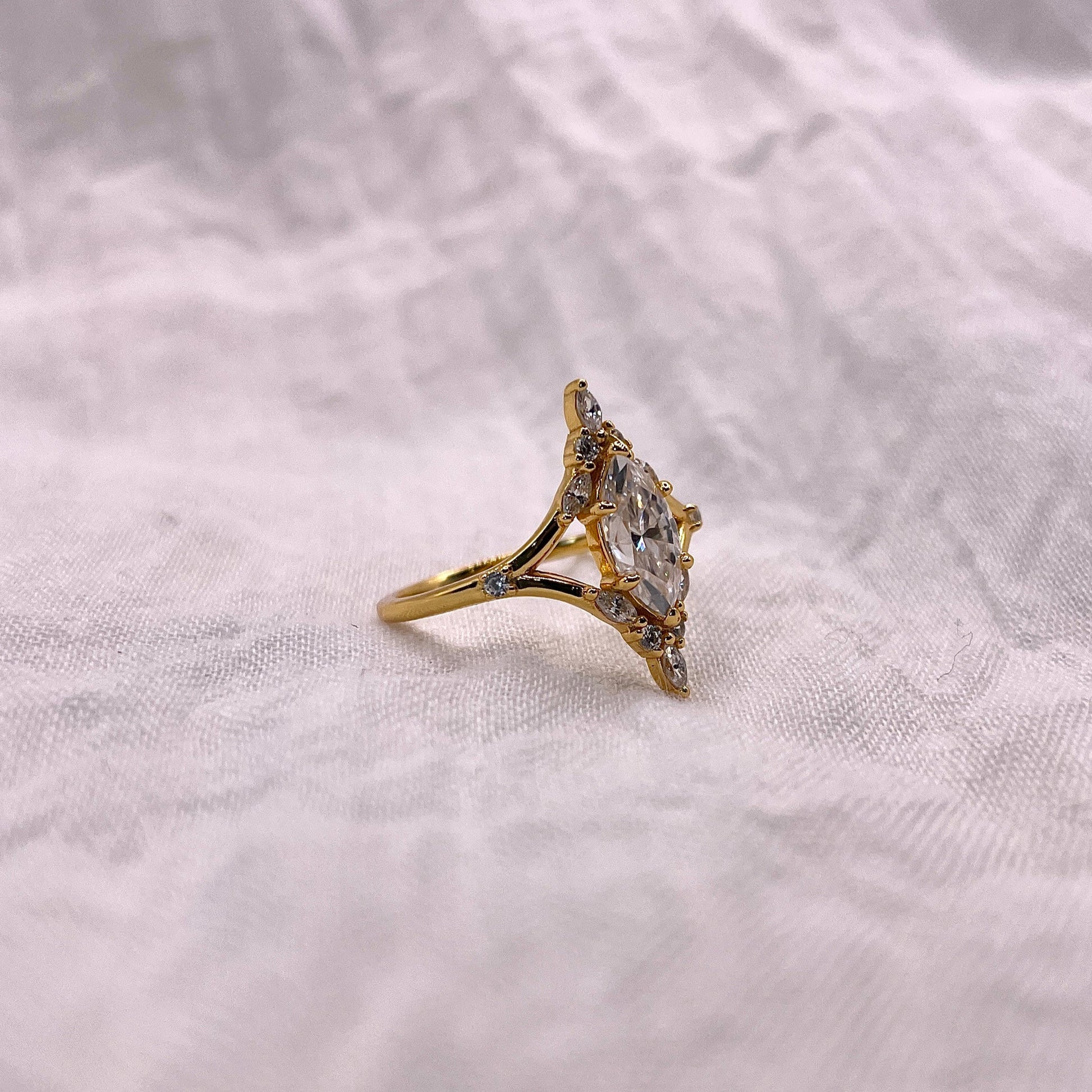 Marquise Moissanite Engagement Ring: Gold Plated Sterling Silver, Vintage Style