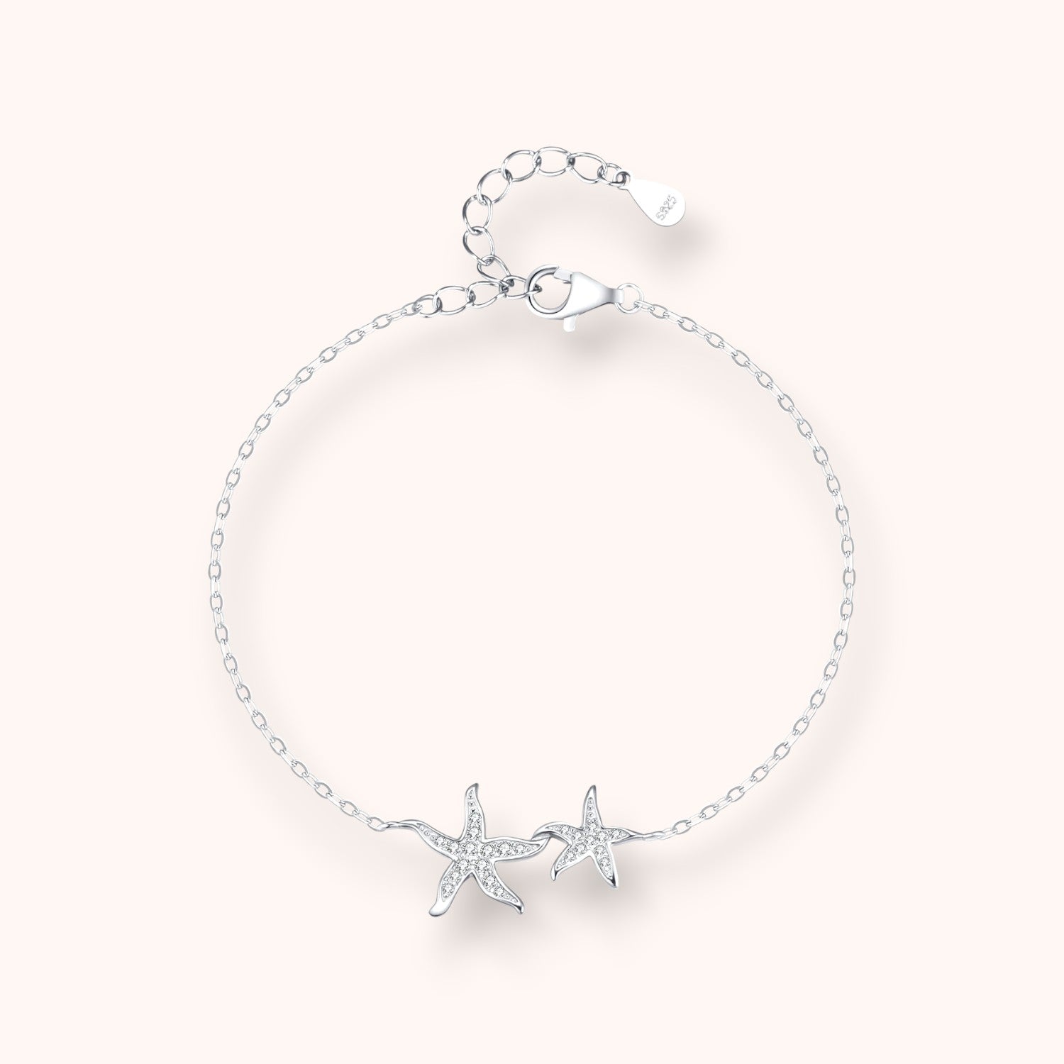 Crafted from solid 925 sterling silver, it features two dainty starfish charms on an adjustable chain for a perfect, comfortable fit.