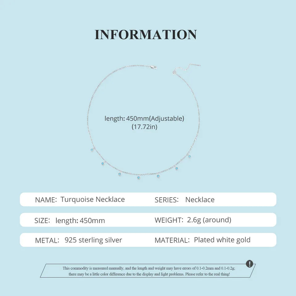 Crafted from solid 925 sterling silver and plated in white gold, it features dainty turquoise charms that shimmer gently with every movement.