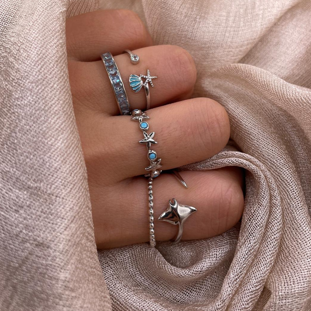 Manta Ray Open 925 Sterling Silver Ring Minimal Ocean Adjustable Ring
