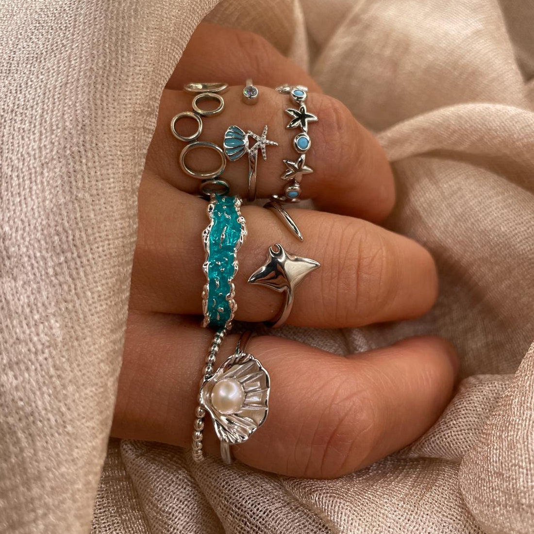 Inspired by the graceful movement of manta rays, this minimalist open ring is crafted in solid 925 sterling silver.
