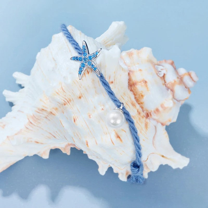 925 Sterling Silver Starfish & Pearl Hand Rope Bracelet