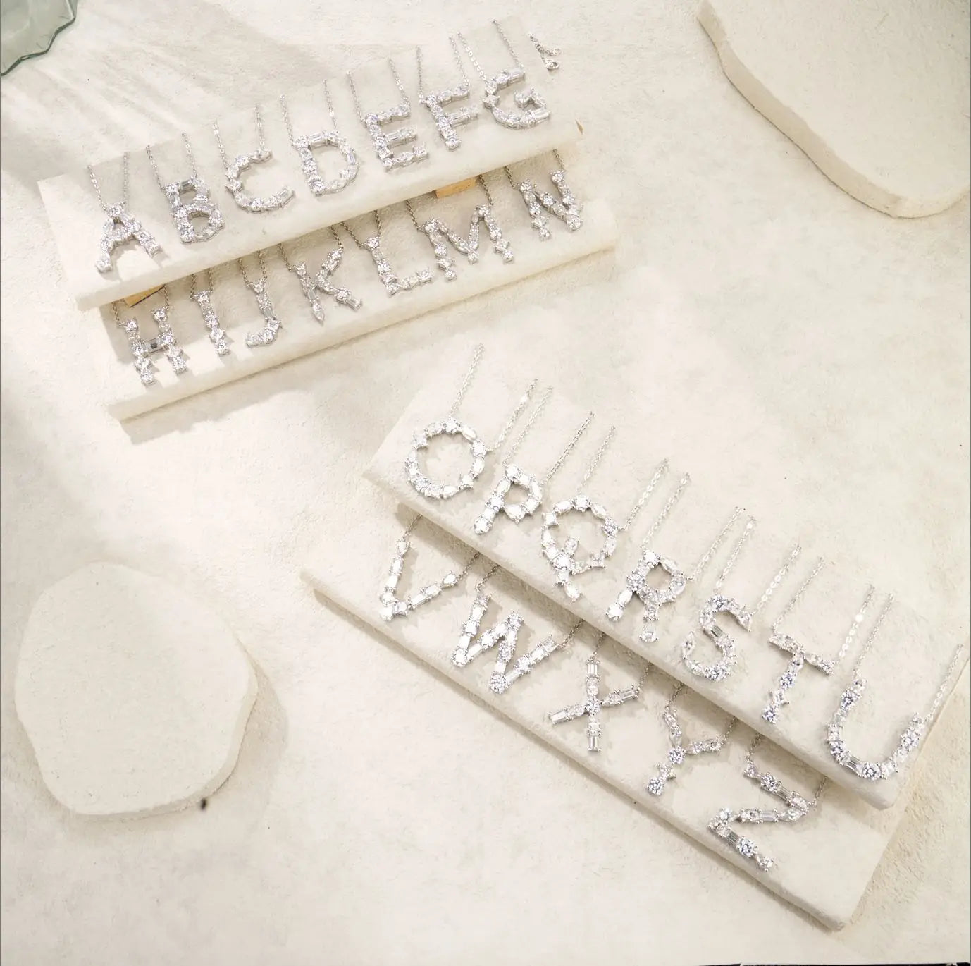 Wear your story with this stunning Moissanite initial necklace. Each pendant is crafted in 925 sterling silver and features brilliant Moissanite stones that 100% pass the diamond test. Comes with a GRA certificate for authenticity and quality
