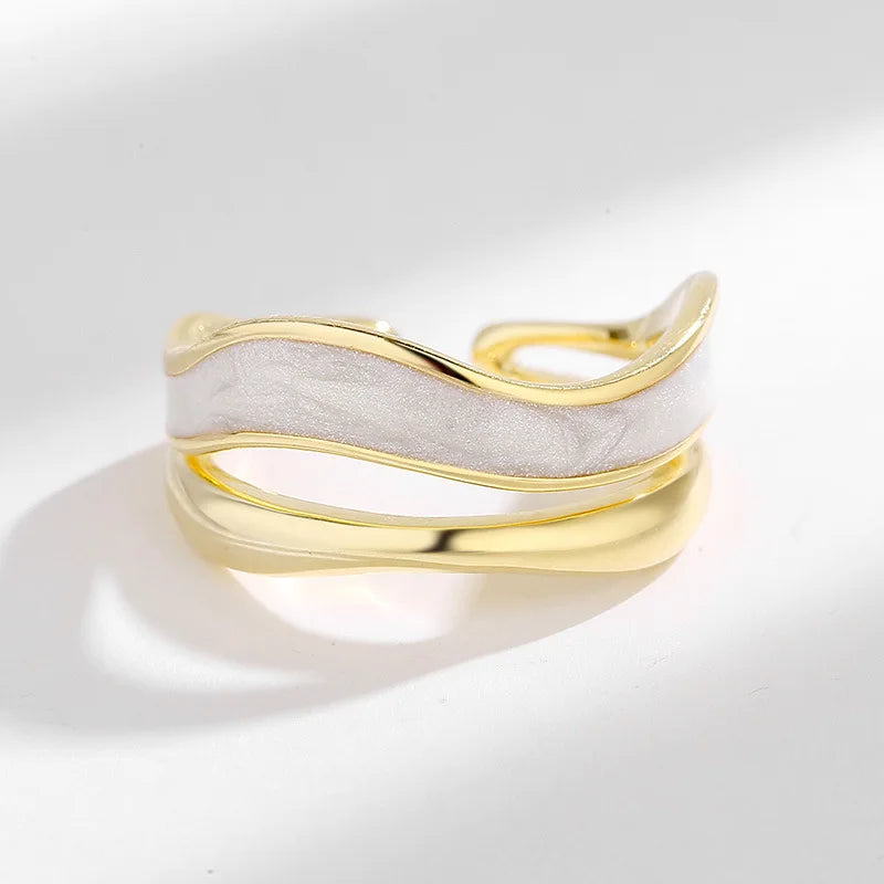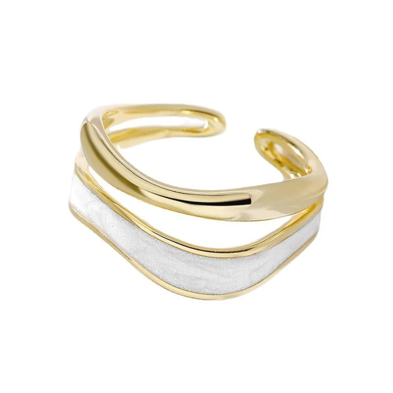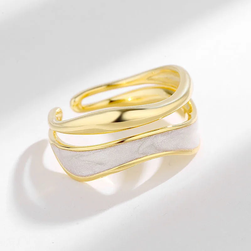 Gracefully curved and effortlessly elegant, the Luna Crest Ring is a tribute to moonlit waves and timeless femininity. Crafted from 925 sterling silver and dipped in radiant gold, it features a fluid dual-band design, highlighted by a shimmering white enamel inlay that evokes the soft glow of pearl or seafoam.