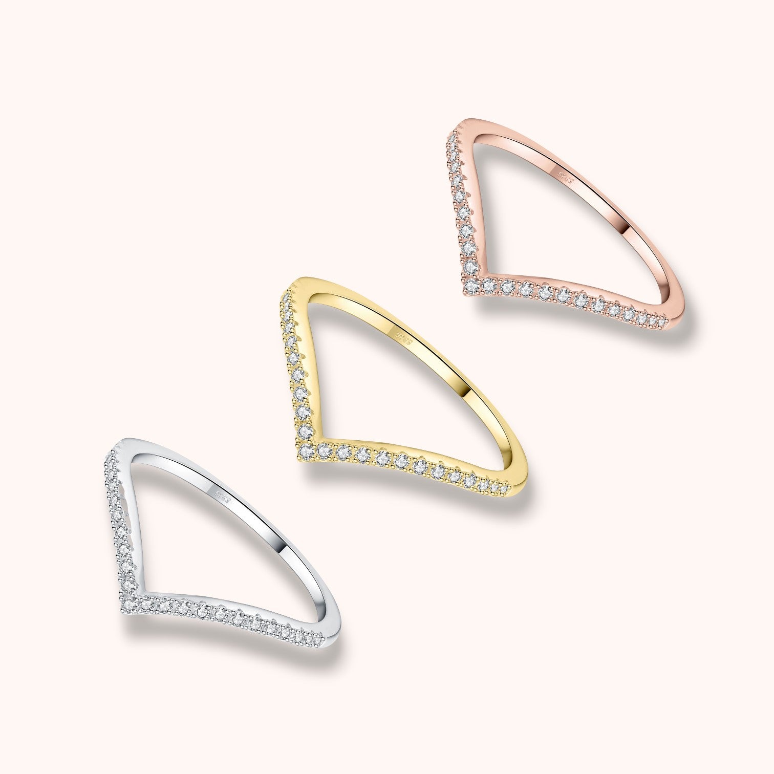 Add a touch of sparkle and modern elegance with this V-shaped moissanite ring — designed to catch the light from every angle.