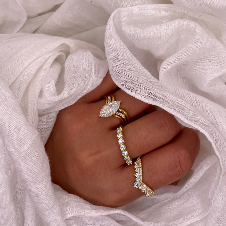 Main Stone: Marquise Cut Moissanite (D Color, VVS1)