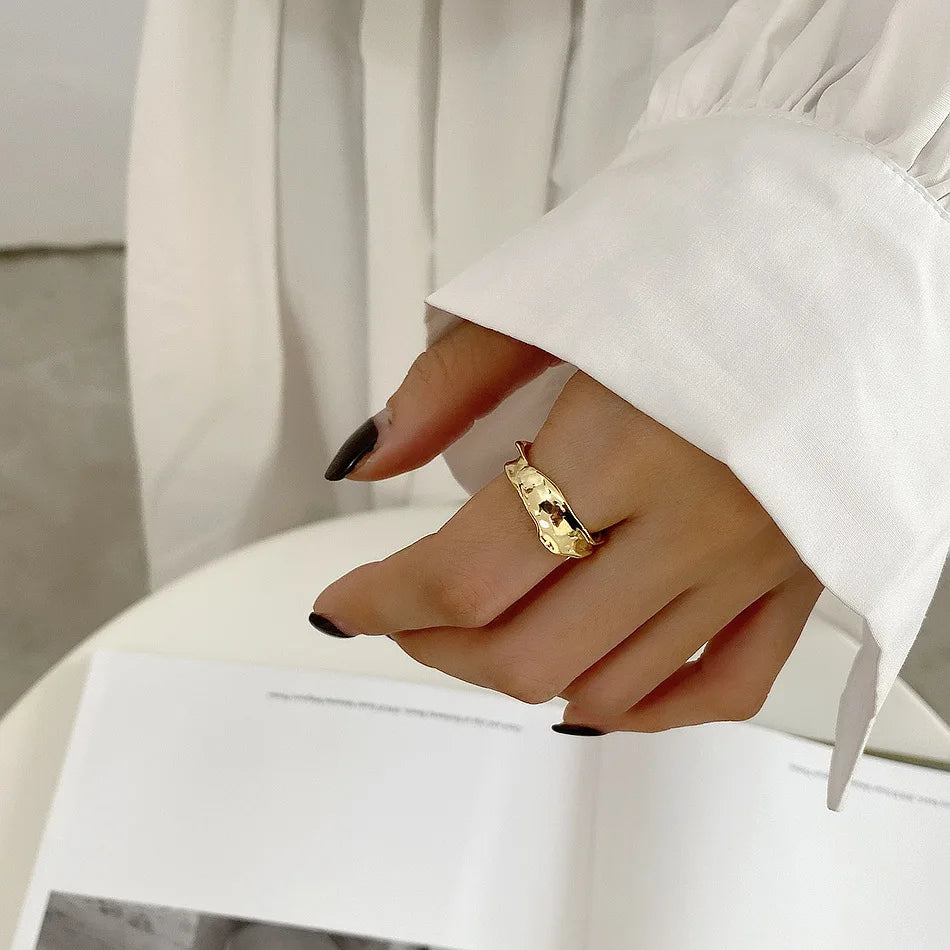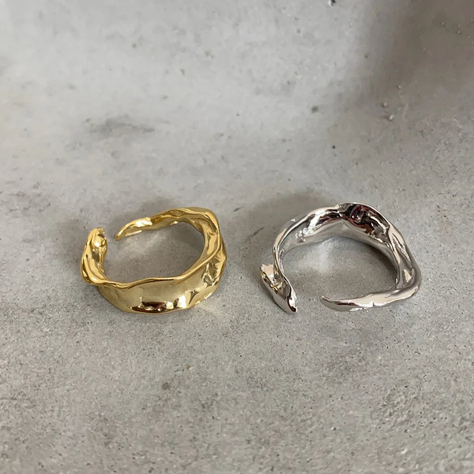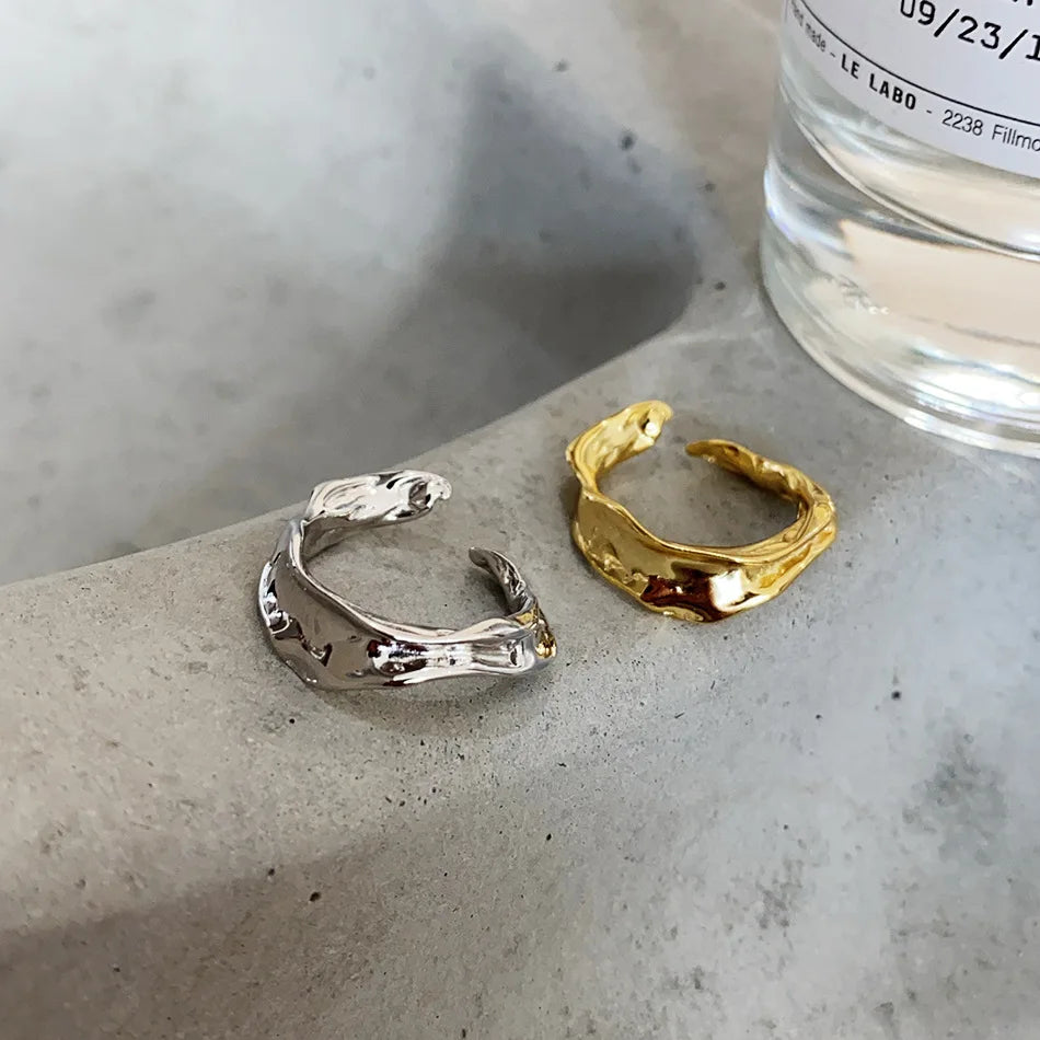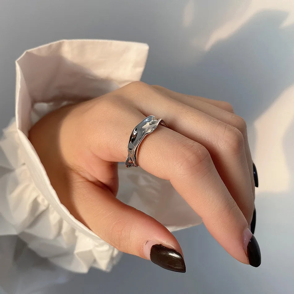 Crafted from high-quality 925 sterling silver, this ring features an organic, molten texture that flows like liquid metal. Its sculptural silhouette makes a statement whether worn solo or stacked.