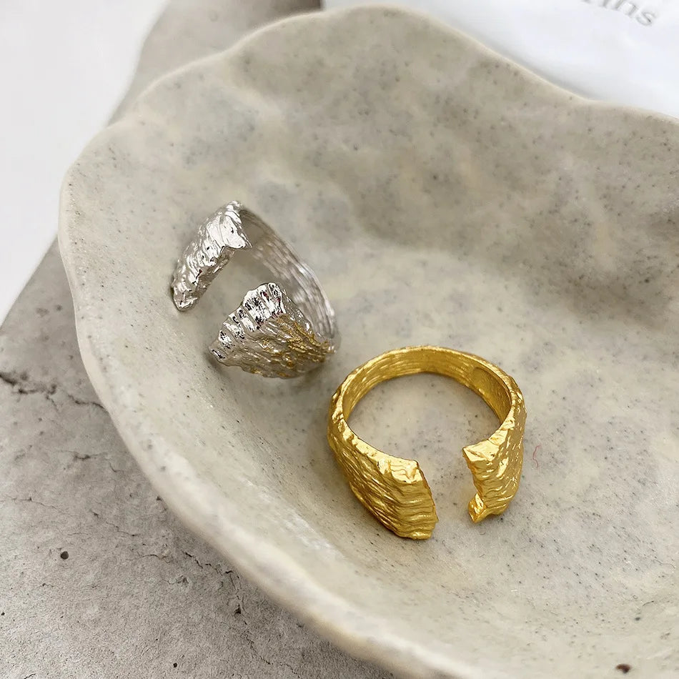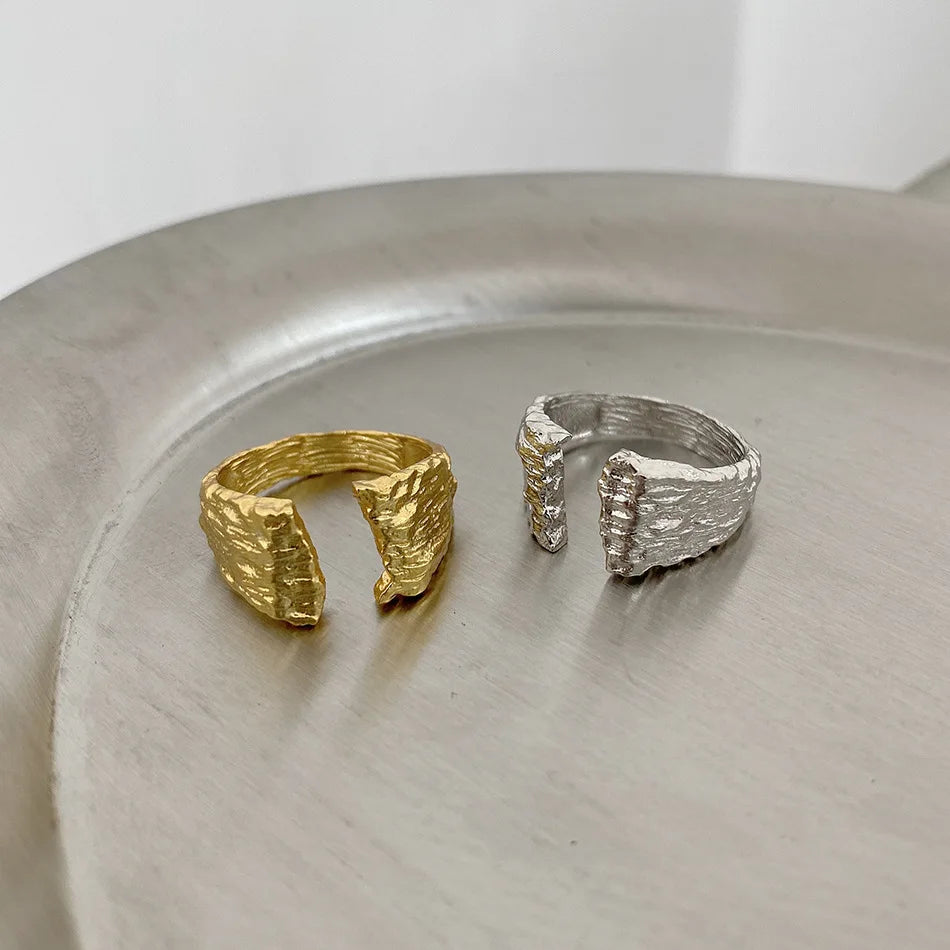 Bold and unapologetically raw, the Terra Break Ring captures the spirit of the earth in its most untamed form. Sculpted from 925 sterling silver, this open band features a rugged, rock-like texture and asymmetric edges that evoke the beauty of fractured stone.