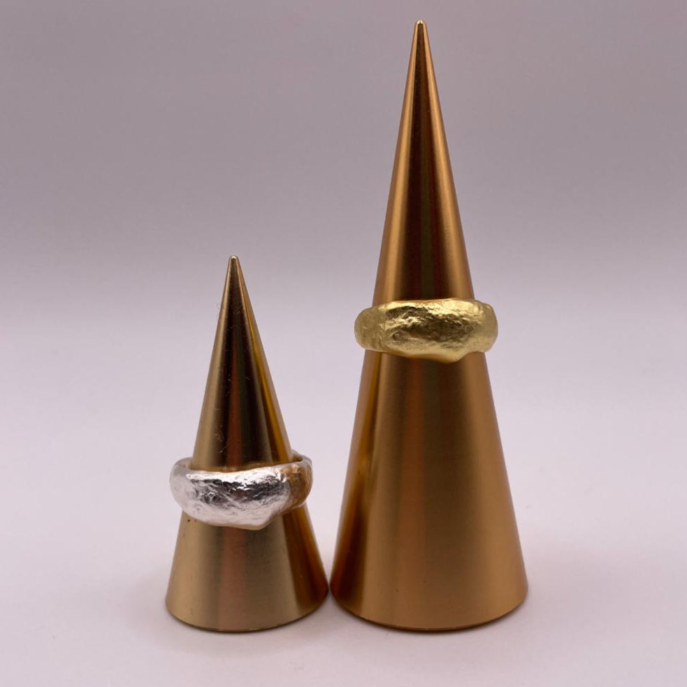 Modern Hammered Texture – A bold yet minimalist ring featuring a hammered finish that reflects light beautifully. Perfect for those who love unique statement jewelry with an artisanal feel.