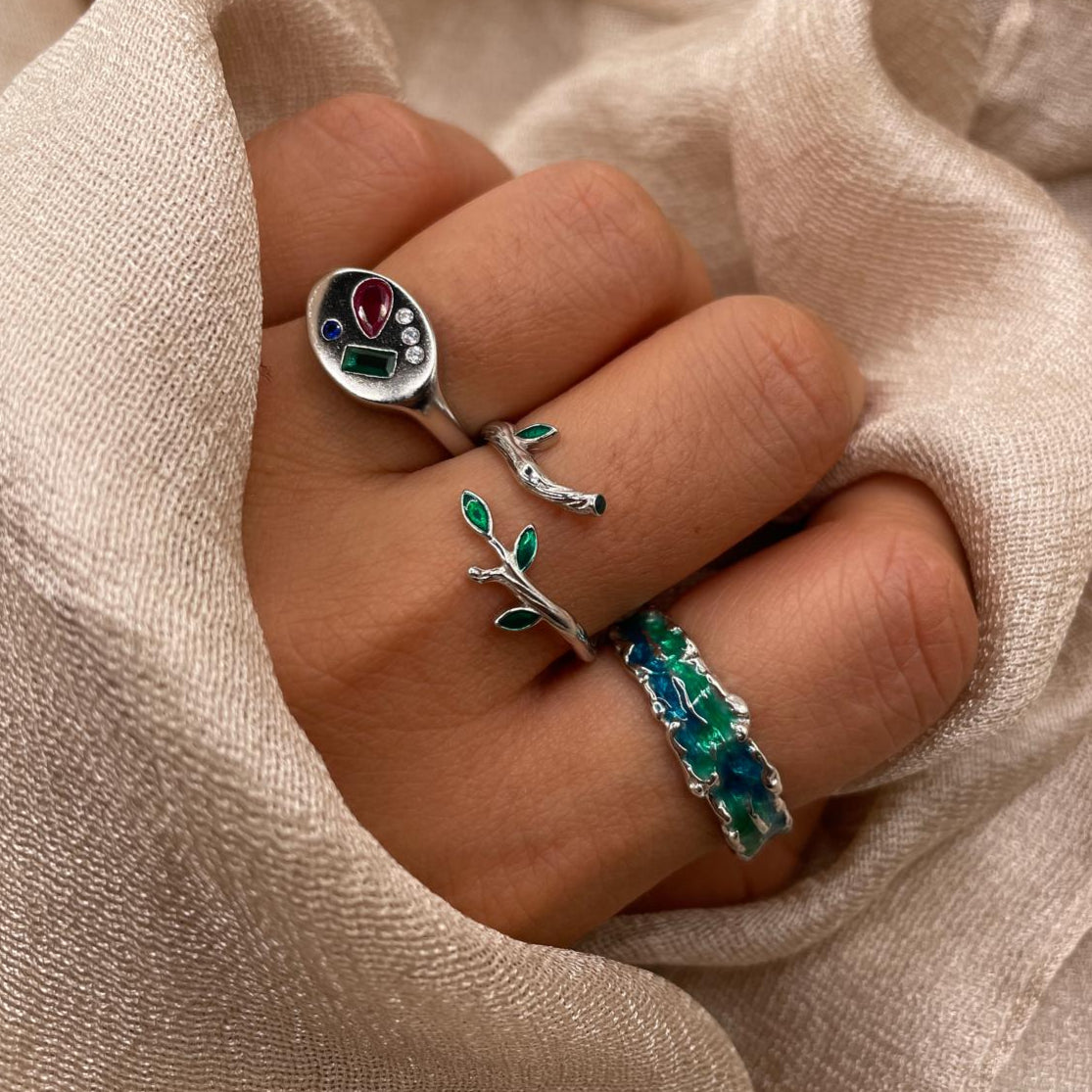 This 925 Sterling Silver Leaf Ring is inspired by delicate tree branches, finished with vibrant green enamel leaves. A lightweight, elegant piece that makes the perfect everyday accessory or thoughtful gift for nature lovers.